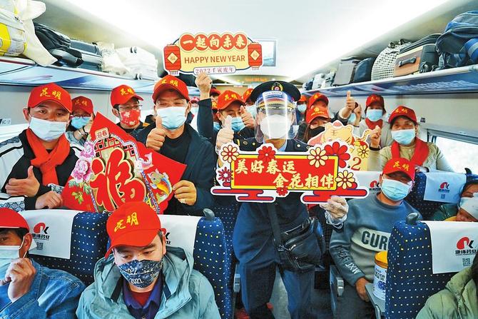 为全力支持农村劳动力尽快返岗、尽快就业,更好地巩固拓展脱贫攻坚成果,推进乡村振兴,各级相关部门配合铁路部门共同推出周到温馨的服务,让广大务工人员安全、有序、温馨出行。