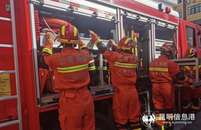 15时57分,漾濞县消防救援大队派出前突分队1车5人出动赶赴现场核实情况;大理支队苍山西消防站3车15人,下关消防站3车20人,古城3车15人,凤仪特勤站3车20人2犬,共计12车68人2犬已在营区集结完毕,正在检查器材装备,做好相关出动准备。