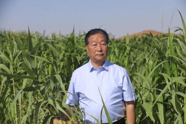 ▲2013年4月,林占熺团队开始探索用菌草治理流沙,现取得了系列的国际领先成果,为黄河生态安全屏障建设提供科学依据和适用技术。图为林教授在阿拉善菌草治沙现场。