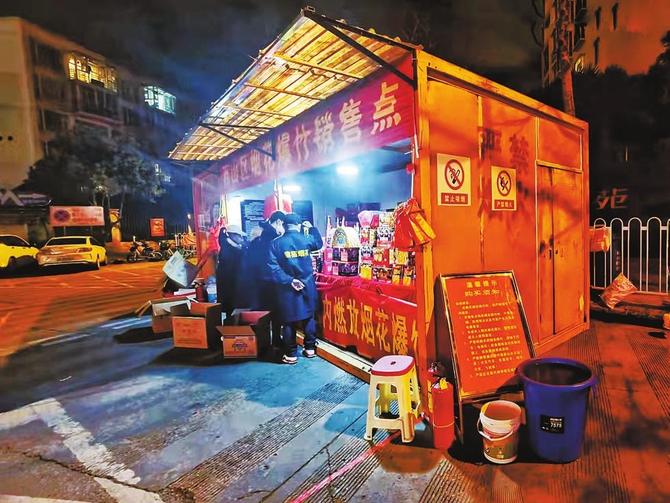 为让市民较好地感受年俗——燃放烟花爆竹,有的售卖点营业到深夜。