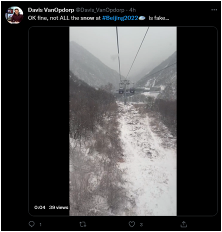 不过与往常一样,也有一些不和谐的声音。一个名叫戴维斯·范奥普多普的德媒体育记者就联系到冬奥会上的人造雪上阴阳怪气地称:“好吧,北京冬奥会上不是所有雪都是假的……”