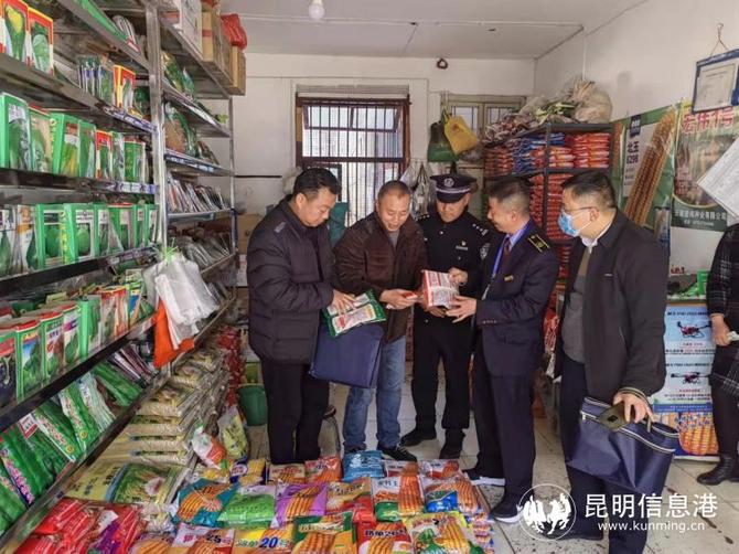 6686体育讯 记者邱丽君 为全力保障粮食生产和重要农产品有效供给,防止假冒伪劣农资坑农害农,2月15日,云南省农业农村厅、昆明市农业农村局农资打假联合检查组联合省公安厅环食药侦总队、市公安局食药侦支队、市供销社赴宜良检查农资经营和农资打假工作开展情况,对辖区内种子、农药、兽药、化肥、农机经营门店进行检查。