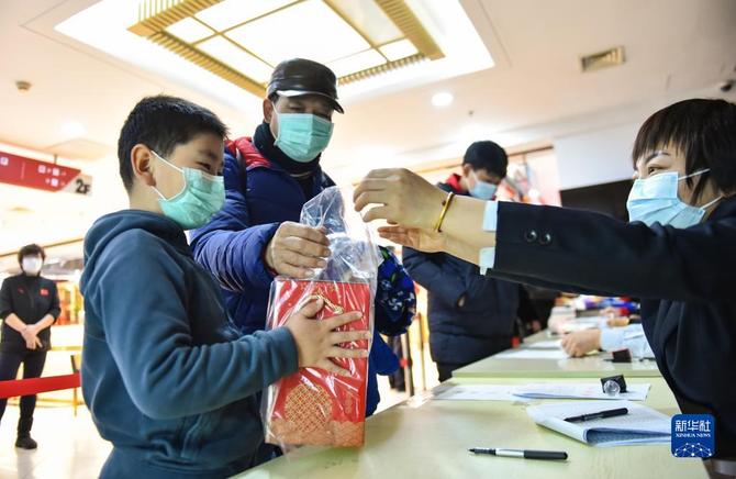 2月14日,顾客从专门的兑付通道进入商店领取预订的“冰墩墩”毛绒玩具。新华社记者 陈钟昊 摄