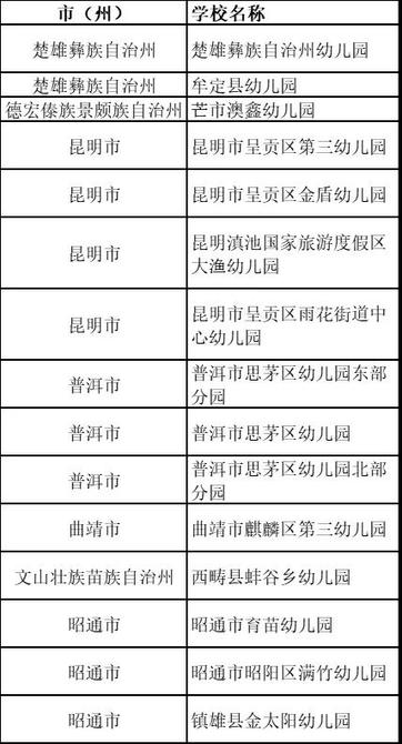 2021年度全国足球特色幼儿园名单(云南)