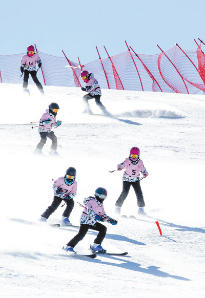 在“带动3亿人参与冰雪运动”目标引领下,各地通过开展形式多样、老少皆宜的冰雪活动,点燃人们的运动热情。图为滑雪爱好者在内蒙古自治区凉城县岱海国际滑雪场滑雪。