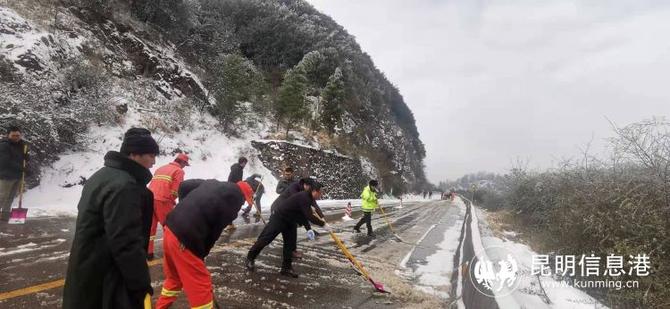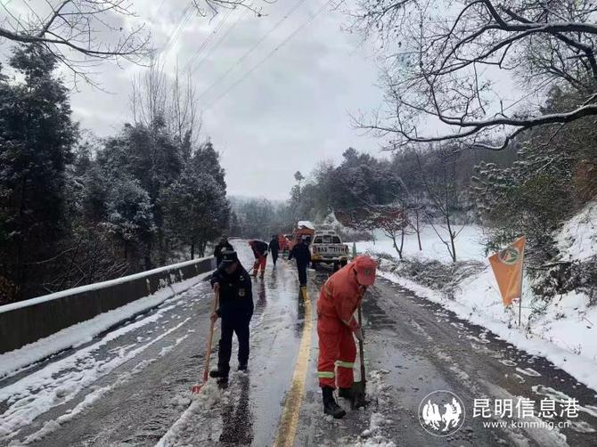 当天,盘龙区应急管理局局长闵春海第一时间到现场进行指挥协调,协同交运、交警、辖区街道等部门全力组织除冰除雪工作,完成保通工作后,为防止出现道路安全事故,工作人员还建议居民非必要不出行,并安排执法队员和应急工作人员加强路面巡逻力度,劝阻上山赏雪的车辆。