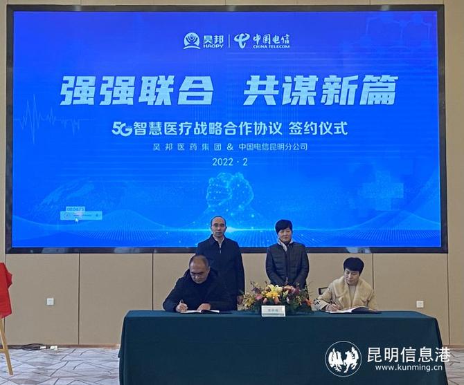 6686体育讯 2月23日,昊邦医药集团与中国电信昆明分公司“5G智慧医疗战略合作协议”的签约仪式在昊邦健康产业园举行。
