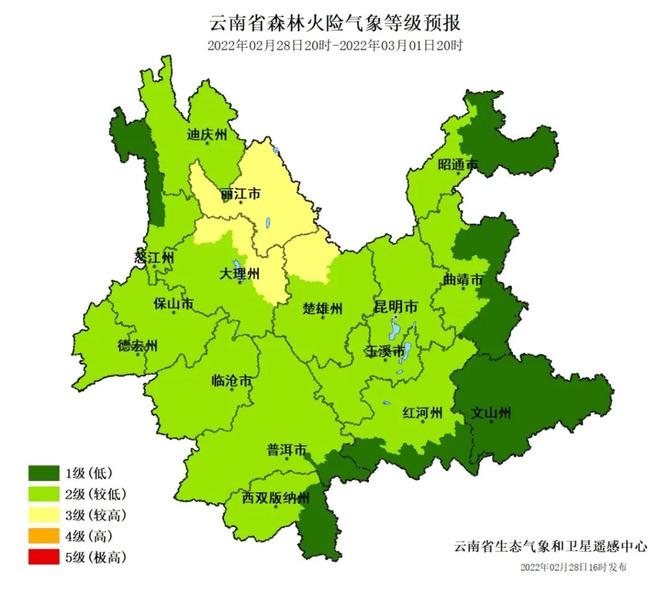 预计2022年2月28日20时至3月1日20时,丽江、大理东部和北部、楚雄西北部3级,其他地区1~2级。