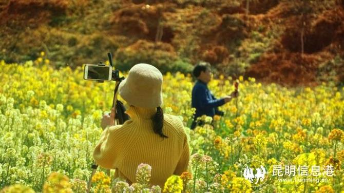 据了解,安宁市甸中村彩色油菜花从2月初进入初花期,目前依据花色品种不同,已次第进入盛花期,整个花期持续至3月底。(供图:时艳、美美)