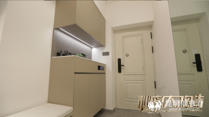 改造前,玄关只有一个简单的鞋柜。改造后,设计师在玄关处设计了大尺寸储物柜,方便分类收纳物品,新增换鞋凳及感应灯,让王兰兰出入更为便利。