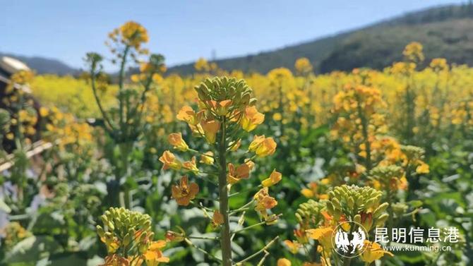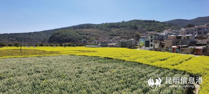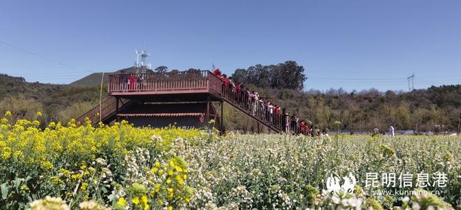 3月的螳川春风拂面,阳光普照,来到螳川这片新建的花田,顺着彩色步道进入,道路两侧连绵不断的金色花海一路涌向远处,一眼看不到边。俏丽清新的油菜花为春日增添了一抹亮色。花儿们忙着争相斗艳,人们忙着拍照赏花,小蜜蜂在花田间忙着采蜜,空气中弥漫着油菜花的芬芳,让人觉得心旷神怡。站到观景台上,俯瞰金黄色花田中由彩色油菜花构成的“美丽乡村号列车”,列车仿佛已经鸣笛,悠悠地从花丛间穿过,带领安宁人民奔向幸福新生活。