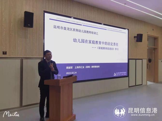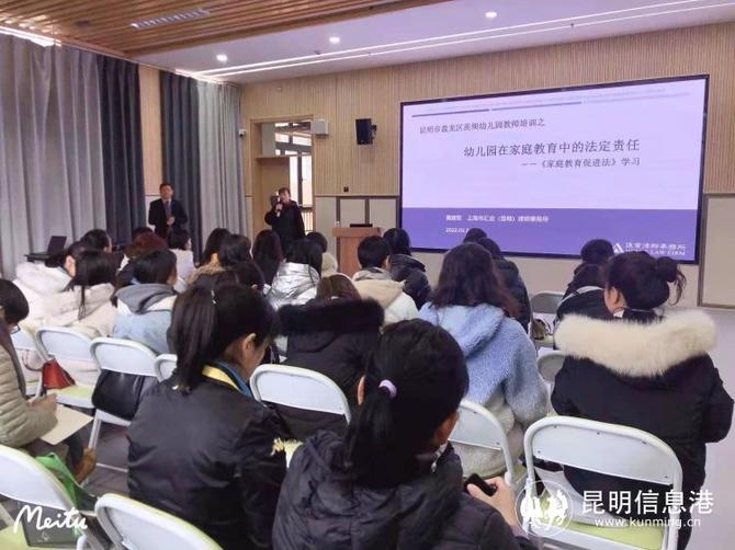 6686体育讯 记者甘凌菲 通讯员张露萍 孩子的成长离不开家庭、学校、社会,幼儿家庭教育和幼儿园教育成为了幼儿教育的关键。为深入推进《中华人民共和国家庭教育促进法》的落实,提升教师家园共育质量和水平,近日,茨坝幼儿园组织全体教职工开展了《中华人民共和国家庭教育促进法》培训活动,特邀上海市汇业(昆明)律师事务所黄建军律师来园进行讲座。