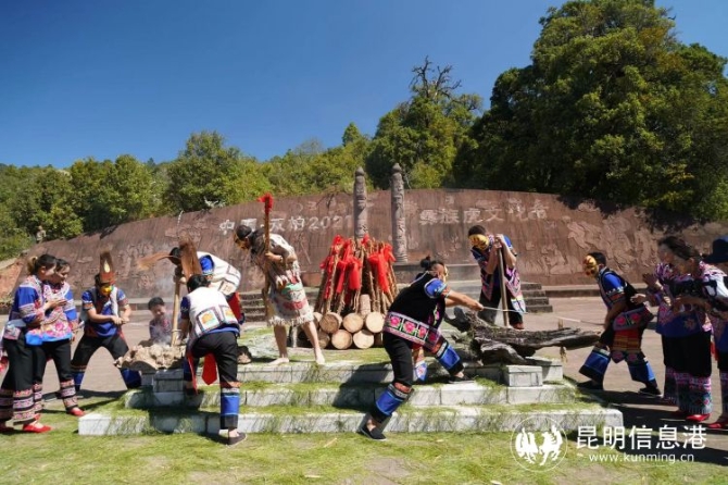 随着一声声锣响,大锣笙登场了。先击锣后捂锣,其声时快时慢,舞步随锣声不时变化。其中,最为抢眼的大锣笙展演环节当属“踩犁头”,只见,参与展演的双柏非遗传承人边跳大锣笙边在烧得通红的耕田用的铁犁头上踩踏、舞动!这引发网友们纷纷刷屏:“这太神奇!”“他们是如何做到的?”“我不信,得去双柏看一看!”