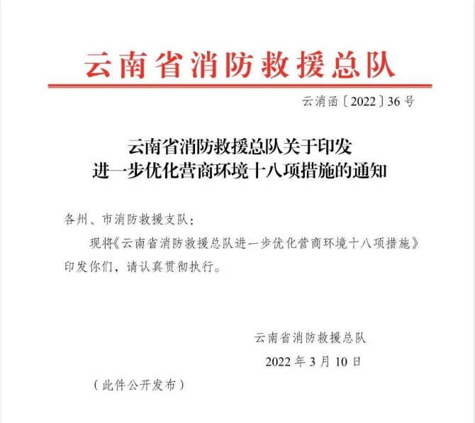 附件:《云南省消防救援总队进一步优化营商环境十八项措施》