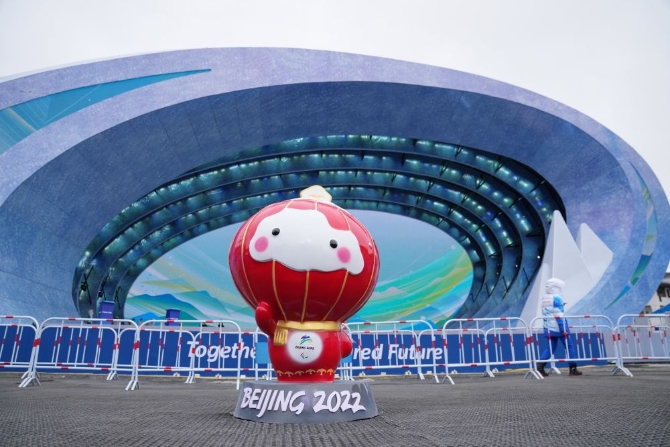 这是2月28日拍摄的张家口颁奖广场“雪容融”景观。新华社记者牟宇摄