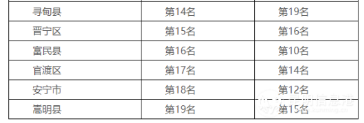 昆明市各行政辖区水环境质量排名情况如下: