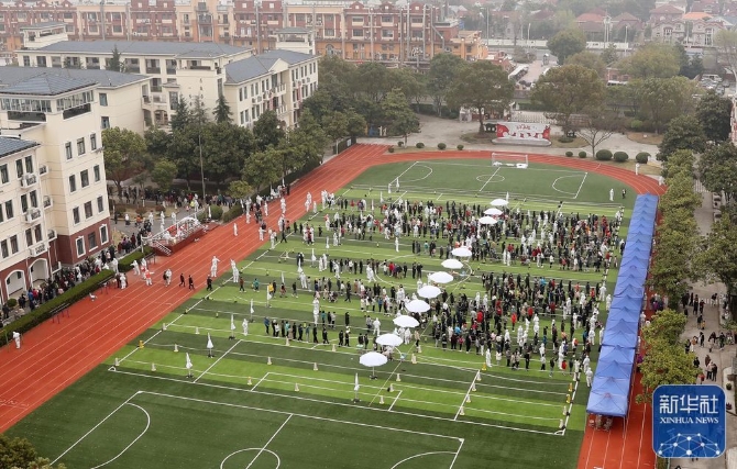 3月19日拍摄的设在上海康城小区内的检测现场——上海师范大学康城实验学校。
