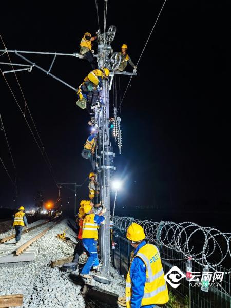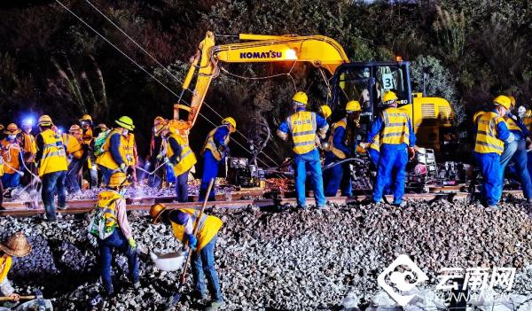 “今天晚上施工是多单位、多工种、 多工序的联合施工, 三个龙口同时进行拨接,战线长、难度大、安全风险高。” 忙碌穿梭于各施工点的王志军说,昆明局集团组织中铁三局等施工单位,结合现场实际,超前谋划,制定了应急措施和针对性的实施方案,投入大型机械9台、挖掘机12台 ,全力攻坚会战。次日凌晨4点,所有工序全部完成,线路达到运行条件。