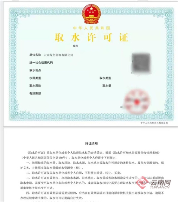 3月21日,通过云南省取水许可电子证照系统,云南绿色能源有限公司申领了系统首次发出的取水许可电子证照,标志着我省在推进取水许可审批制度改革和优化营商环境的工作中取得重要突破。