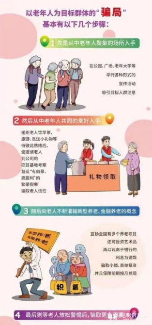 投资理财要谨慎。不法商家瞄准老年人的退休金与养老金,利用老年人信息不对称等弱点,捏造虚假金融项目,抛出高利率诱惑,致使老年人放松警惕,上当受骗。