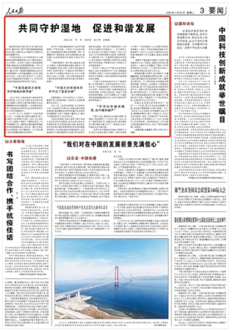 “中国为全球湿地保护作出了重要贡献”