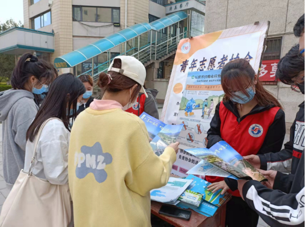 看一场节能宣传。下午16:00,在二餐厅门口,青年志愿者协会与后勤管理处(保定)一同举办节水宣传活动,志愿者们向路过同学发送节水宣传单,并为同学们讲解节能知识。同学们仔细听志愿者的讲解,并在宣传展板面前驻足观看。