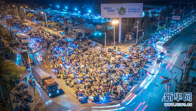 凌晨的花卉交易市场热闹非常(资料图)。新华网发(晋宁区融媒体中心 供图)