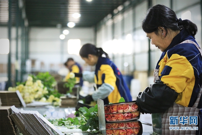 包装鲜切花(2月25日摄)。新华网 邢苏蓉 摄