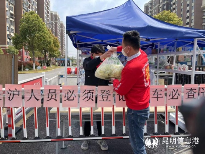 在松江九亭,朱大师脆皮五花肉门店的老板给周边朋友送过生活用品,所以想到在送餐的同时,可以免费为有需要的街坊配送生活用品。“同在一个社区,能帮一点是一点。”他说。