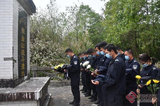 4月3日上午,该站民辅警来到位于保山市龙陵县的张金山战斗遗址,怀着崇敬的心情默哀敬礼、敬献鲜花,并了解了张金山战斗遗址的背景、历史情况。同时,该站还组织民辅警通过中华英烈网、云南出入境边检总站“致敬英烈”链接,了解英烈先进事迹,在线上为英雄们敬献鲜花、点亮蜡烛、抒写寄语等。