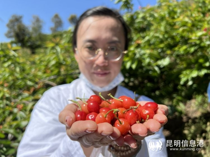 “这种顶部有一个小尖尖,外形像一个桃心的樱桃就是‘红玛瑙’,云南省只有我们米户村大面积种植,约有2000亩。”米户村党委书记陈勋平介绍。“红玛瑙”不仅在外形上与其他樱桃有区别,而且个大、核小,味浓,在专家的培育下甜度更高。“大部分樱桃是酸甜的,而‘红玛瑙’成熟的鲜果在口感上可以达到纯甜”。