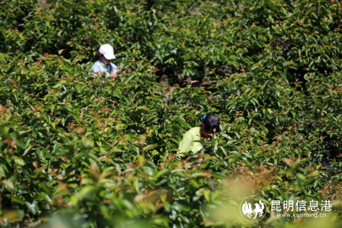 眼下,米户村400余户人家几乎家家都种有樱桃,高品质的米户樱桃经常还没成熟就被外地商贩预定了。靠着这一“甜蜜产业”,米户村从过去全镇贫困人口占比最高的行政村,到现在人均年收入达7000元。2020年,米户樱桃还获得了云南省及昆明市农产品“三品一标”绿色食品认证,品质和口碑提升至新的台阶,受到越来越多消费者的认可。