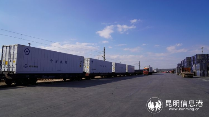 据了解,铁路部门结合常态化疫情防控需要和中老铁路开通带来的路网变化,4月8日零时起,昆明局集团执行新的列车运行图新增4列中老铁路国内段直通货物列车和新增2列陆海新通道班列,按照货物运输需求,按“一日一图”开行,满足运输需求。(通讯员何思远 王潘博 刘昊亮 供图)