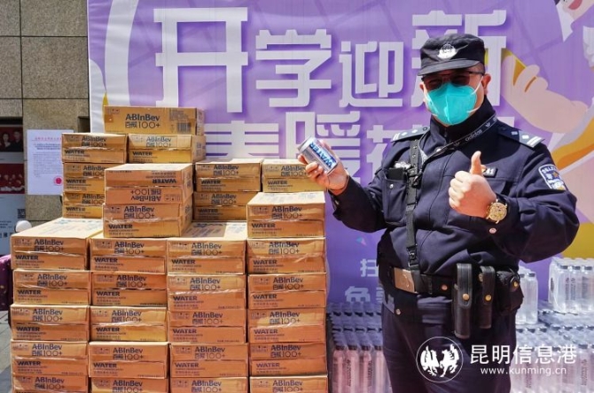 4月14日,为了让防疫工作人员们在每天忙碌辛苦的一线能喝上一口干净的水,也为了将百威中国应急纯净水更快速地送到防疫一线,所属百威中国的百威(昆明)啤酒有限公司的志愿者们携手五华区红十字会和五华区黑林铺街道办事处向正在奋战管控区一线的工作人员们送去9600听百威应急纯净水和1200包爱心饼干。一听听纯净水拉环拉开的“咔嚓”的声音反复一声声鼓励和支持,表达着大家战“疫”的信心和决心。