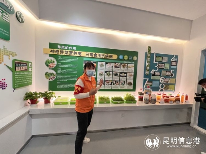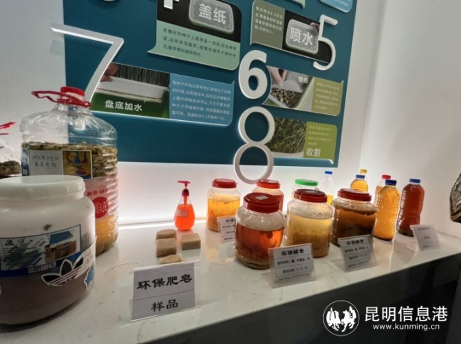 而馆内生机勃勃的绿色芽菜和浇灌它们成长的、让厨余垃圾变废为宝的各类“环保酵素”也成为一道独特的风景线。
