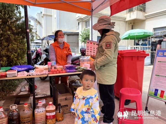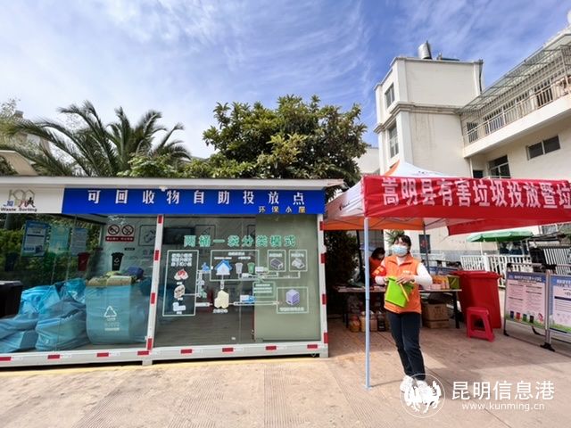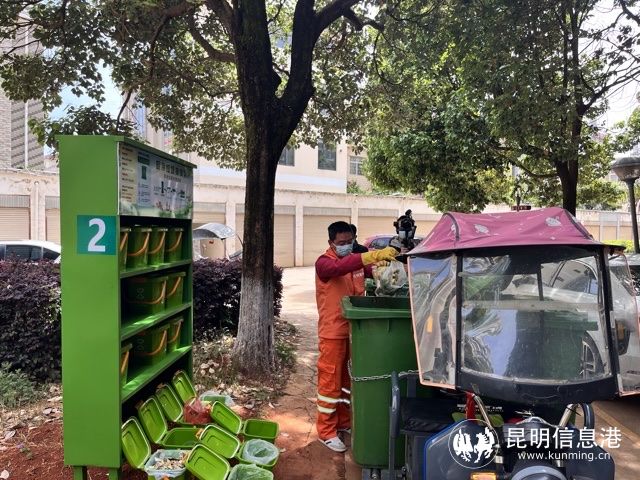 据介绍,金叶花园小区采用“两桶一袋”分类模式,将智能设备与传统分类桶相结合,建立定时定点收运模式,提高覆盖率,降低成本,示范点通过“嵩明垃圾分类”小程序平台实现垃圾分类效果数据的统计。目前,小区已建设完善四分类垃圾投放收集设施,包括1座生活垃圾分类收集亭、1座可回收物收集房和10个厨余垃圾投放收集架。已给居民配发厨余垃圾收集桶480个。配备四分类运输车辆4辆,做到不混装混运,分类收集运输。
