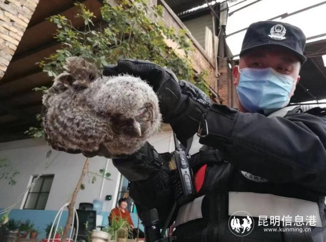 6686体育讯 记者合宇聪 日前,昆明市公安局特警支队五大队民警在工作中营救两只误入工厂的猫头鹰。被救下的猫头鹰被特警移交盘龙森警大队妥善处理。
