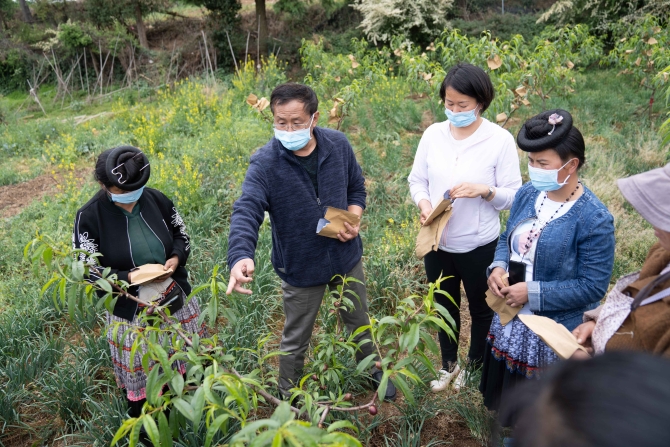 西山区农业农村局技术人员正在现场为村民们演示病虫害防治、苗木定干、整形修剪、果实套袋等技术措施,正在试验地劳作的村民表示:“经过农业农村局老师们的指导,以前蜜蜂叮咬,虫害等问题得到了解决,现在的油桃,外观好看了,口感也更好了,上市也有保障了。”