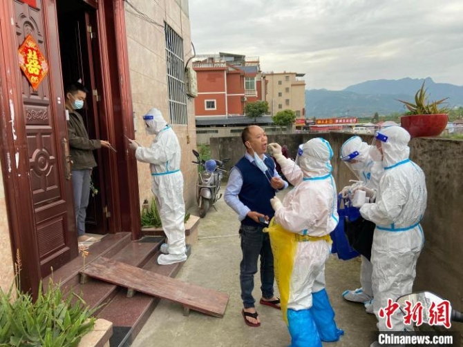 突击队员们上门开展核酸采集。 宁德市文旅局 供图