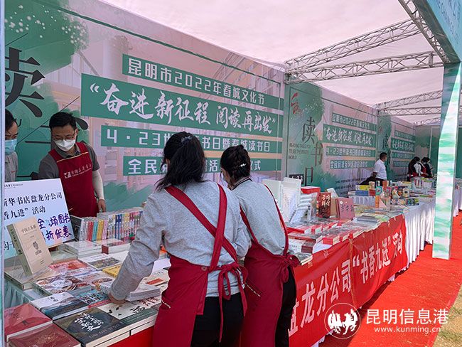 活动现场,昆明新华书店连锁有限公司、新知图书集团有限公司、昆明春晓图书经贸有限公司举办惠民书展活动,展出的图书共850余种,3000余册,种类丰富,包括党政时事类、畅销文学类、少儿类、历史地理类、生活养生类等,适合各个年龄阶段的人群阅读,所有展出的图书市民群众均可以8折的优惠价格将其带回家。除此以外,现场还有中国知网、超星集团等多家数字资源供应商为市民展示各类数字阅读资源,供市民体验并免费下载。