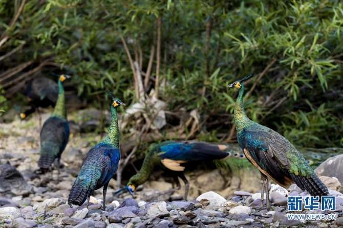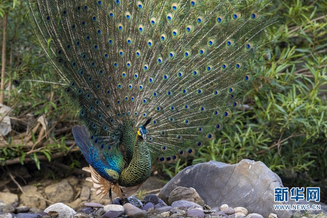 恐龙河自然保护区内的绿孔雀(资料图)。新华网发(颜谦 摄)