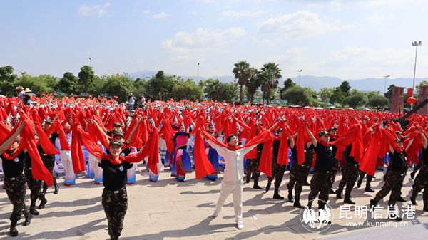 著名舞蹈家黄豆豆与云南蒙自市群众共舞《幸福红》