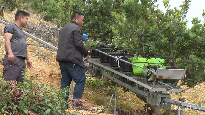 【石屏县兄弟杨梅园负责人 陆萍】我们的杨梅地坡陡路滑,需要八九个工人负责挑送杨梅。现在有了机器,每天能节省2000元的人工费。