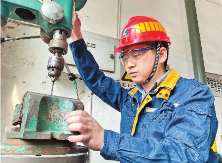 2013年大专毕业后,陆国雄进入西南铜业分公司熔炼分厂,成为一名维修钳工。陆国雄暗下决心,一定要珍惜机会,用努力奋斗来实现人生价值。刚入职的他连扳手尺寸和螺丝型号都分不清,专业技能之路并不轻松。至今陆国雄依然清晰地记得,第一天去班组跟着师父换水泵,他拿着扳手使出最大劲紧固螺丝,反而因用力过度把水泵螺丝拧断在底座里,让师父花了一下午时间才“善后”。惭愧万分的他暗暗发誓:一定要刻苦钻研,苦练本领!