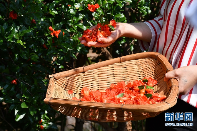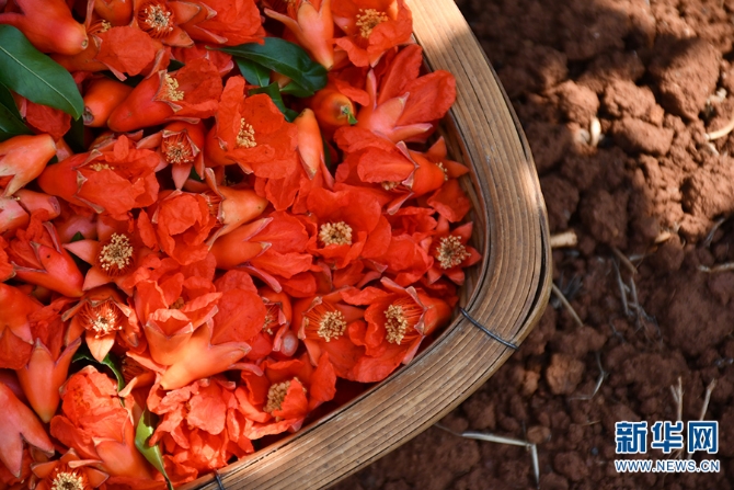春末夏初,在云南省昆明市东川区乌龙镇、阿旺镇、铜都街道等地,石榴花开放,食花的云南人们,通过简单的加工程序,把一盘盘盛满春天味道的素炒石榴花端上了餐桌。(陆雯 徐懿 雷斌)