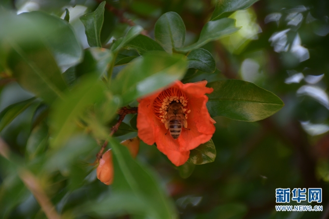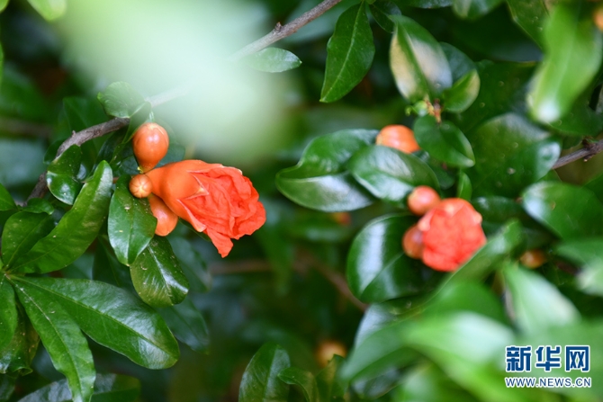 石榴花(摄于4月10日)。新华网发(东川区融媒体中心供图)