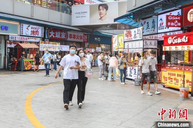 图为江西南昌一美食街,不少市民在逛街品尝美食。 刘力鑫 摄