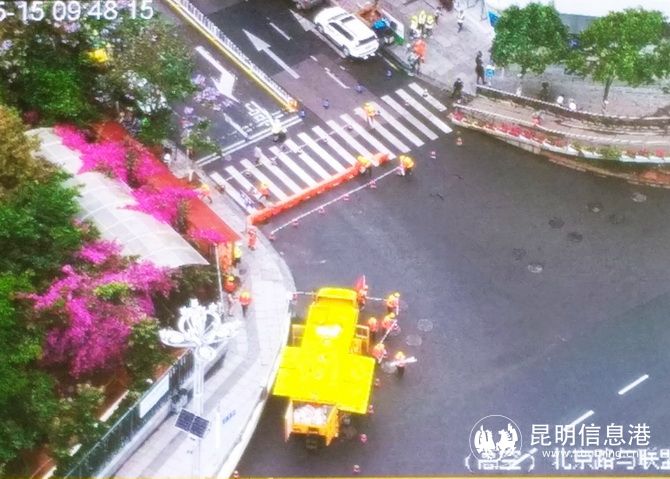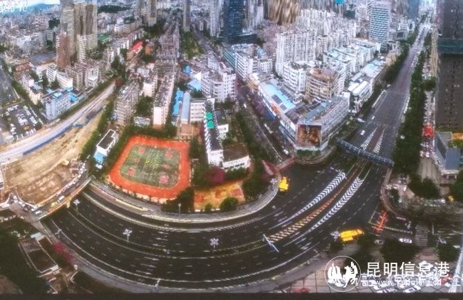 防汛综合演练适时监控下的昆明城区情况。记者江枫摄于指挥调度视频