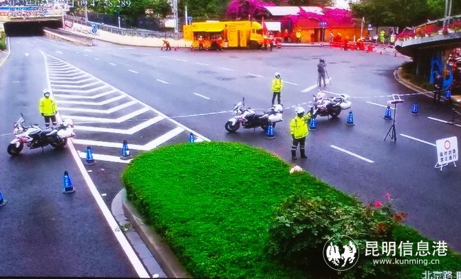 防汛综合演练进行交通临时管制。记者江枫摄于指挥调度视频