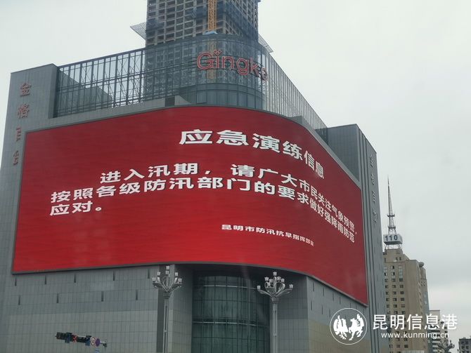 城区大屏发布的应急演练信息。昆明市应急管理局供图